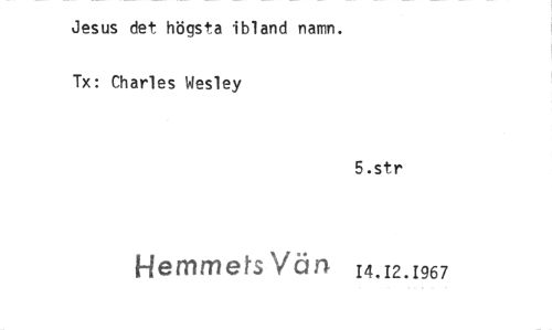 //// Jesus det högsta ibland namn. //// Tx: Charles Wesley //// 5.str //// Hemmets Vän 14.12.1967 ////