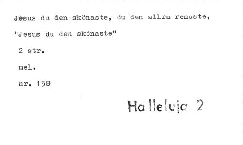 //// Jesus du den skönaste, du den allra renaste, "Jesus du den skönaste" //// 2 str. //// mel. //// nr. 158.- //// Me I u ////