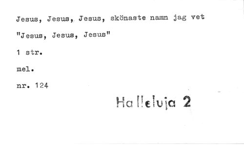 //// Jesus, Jesus, Jesus, skönaste namn jag vet "Jesus, Jesus, Jesus" //// 1 str. //// mel. //// nr. 124 ////
