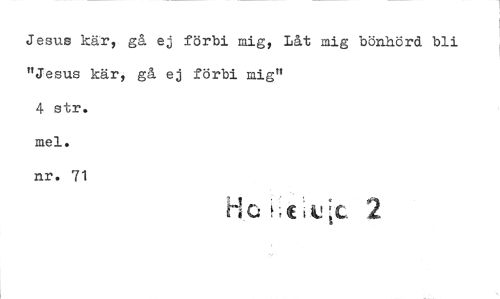 //// Jesus kär, gå ej förbi mig, Låt mig bönhörd bli "Jesus kär gå ej förbi mig" //// 4 str. mel. //// nr. 71 ////