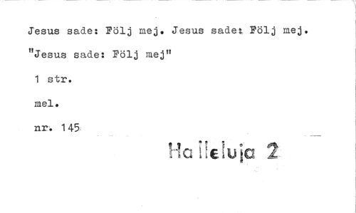 //// Jesus sade: Följ mej. Jesus sadel: Följ mej. "Jesus sade: Följ mej" //// 1 str. //// mel. //// =. 145 //// ! a ula ////
