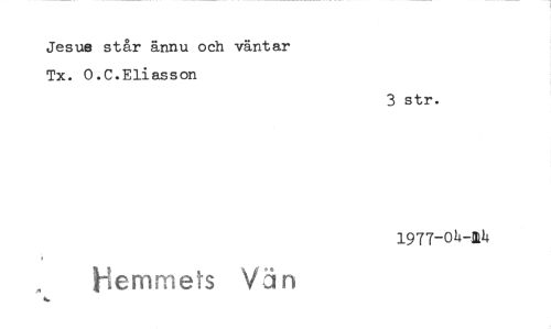 //// Jesus står ännu och väntar Tx. O.C.Eliasson //// 3 str. //// 1977-04-14 //// Hemmets Vän ////