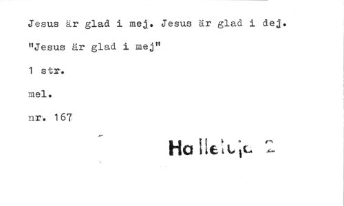 //// Jesus är glad i mej. Jesus är glad i dej. "Jesus är glad i mej" //// 1 str. //// 3nel • //// nr. 167 //// Ha 116'11;6 ////