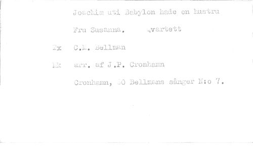 //// Jou.chim uti Babylon hade en hustru Vru Susanna, vartett //// lx c..Bellman //// hk arr. af J .P. Cronhamn //// Cronhamn, JO Bellmans sånger 14o 7. ////