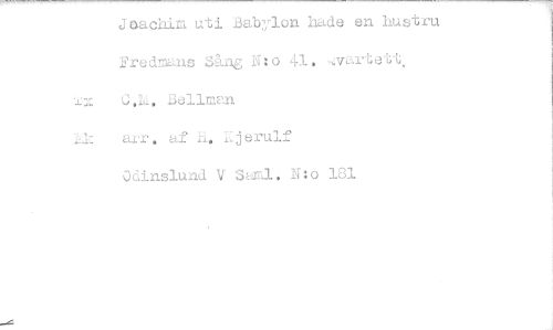 //// ,Joachim uti Babylon hade en hustru Fredmans Sång N:o 41, ,4vartett, C.M. Bellman //// arr, af H. ':jerulf //// Odinslund V Saml. N:o 181 ////