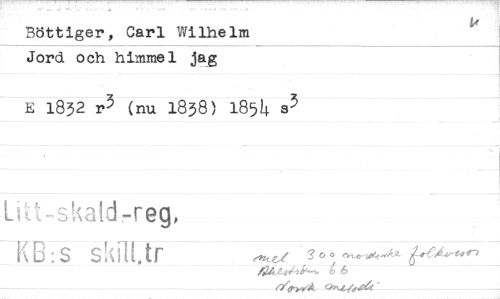 //// Böttiger, Carl Wilhelm Jord och himmel jag //// E 1832 r3 (nu 1838) 1854 85 //// Litt-skald-reg, //// KB:s skilE.tr 444,444 g6 //// -44,344-0b4~4: ////