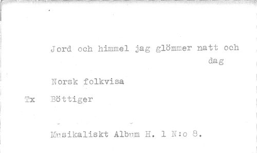 //// Jord och himmel jag glömmer natt och //// dag //// Norsk folkvisa Tx Böttiger //// Mrsikaliskt Albnm H. 1 N:o 8. ////