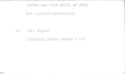 //// Jorden oss alla slw.11 Vid kyrkogårdsinvigning //// G.J. Vogler //// KiLlberg, Liber cantus K 216 ////