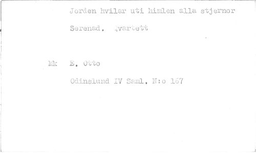 //// Jorden hvilar uti hirAlen alla stjernor Serenad. ..vartett //// hk O'uto //// Odinslund IV Sand, N:o 167 ////