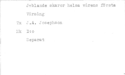 //// Jublande skaror helsa vårens första Vårsång //// Tx J.A. Josephson //// Mk D:o //// Separat ////