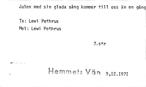 //// Julen med sin glada sång kommer till oss än en gång //// Tx: Lewi Pethrus Mel: Lewi Pethrus //// 3.str //// Hemmets Nal, 9,12.1971 ////