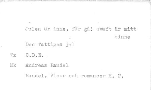 //// Jli_len är inne, får gå! qvaft är mitt //// sinne //// Den fattiges ji1 //// Tx C.D.E. //// Tik Andreas Randel //// Randel, Visor och romancer H. 2. ////