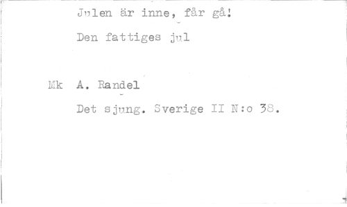 //// Julen är inne, får gå! Den fattiges jul //// lik A. Randel //// Det sjung. Sverige II N:o 38. ////