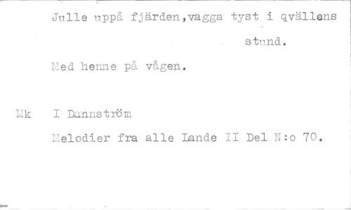 //// Julle uppå fjärden,vagga tyst i qvällens //// stund. //// Med henne på vågen. //// Mk I Dannström //// Melodier fra alle Lande II Del N:o 70. ////