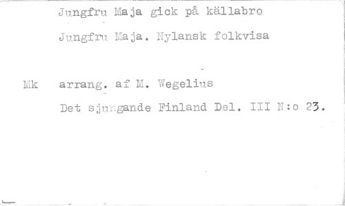 //// Jungfru Maja gick på källabro Jungfru Maja. Nylansk folkvisa //// Tik axrang. af M. Wegelius //// Det sjuI-_gande Finland Del. III N:o 23. ////