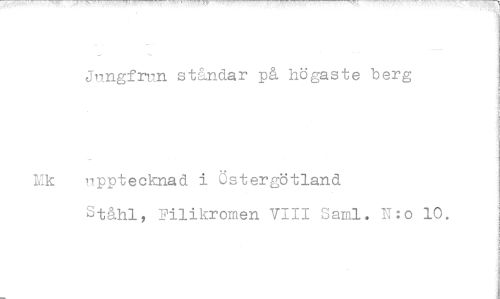 //// Jungfrun ståndar på högas-be berg //// Lik upptecknad i Östergötland //// Ståhl, Filikromen VIII Sand. N:o 10. ////