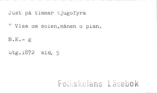 //// Just pä timmar tjugofyra //// " Visa om solen,mänen o plan. B.E.- g //// utg.1872 sid.: 5 //// F3DU.skeians Läsebok ////