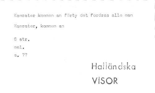 //// Kamrater kommen an förty det fordras alle man Kamrater, kommen an //// str. mel. //// s. 77 //// Halländska //// VISOR ////