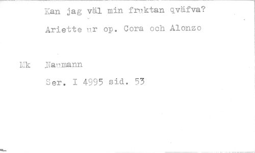 //// Kan jag väl min frnktan qväfva? Ariette nr op. Cora och Alonzo //// Lik ITanmann //// Ser. 14995 sid. 53 ////