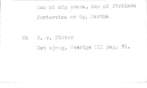 //// Kan ni mig svara, kan ni förklara Portervisa Op. Iartha //// Talk F. v. Plotow //// Det sjlIng. Sverige III pag. 51. ////