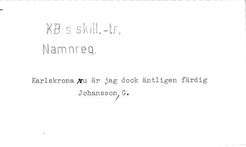 //// X13: s ski11.-tr. //// Namnrea. //// Karlskrona /u är jag dock äntligen färdig Johansson G. ////