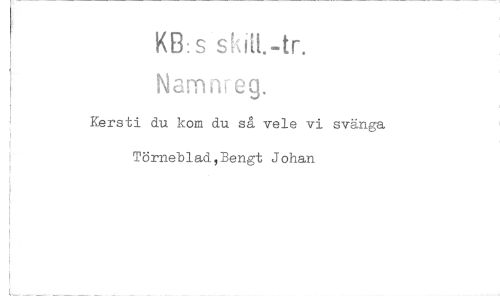 //// KB: s skal-tr. //// Namnreg. //// Kersti du kom du så vele vi svänga Törneblad,Bengt Johan ////