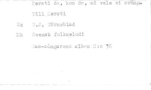 //// Kersti dn, kom du, så vele vi sväng Till rersti //// Tx 3.J, Törneblad //// Lik Svensk folkmelodi //// 3as-sångarens alb»m N : o 36 ////