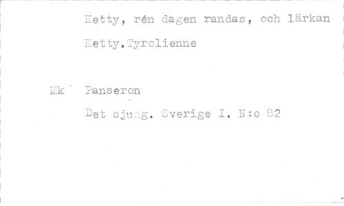 //// ietty, ren dagen randas, och lärkan retty.Tyrolienne //// Mk lanseron //// Det sjug. Sverige 1. N:o 82 ////