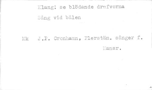 //// rlang! se blödande drnfvorna Sång vid bålen //// Lk J.F. Cronhamn, Flerstäm. sånger f. //// ansr. ////