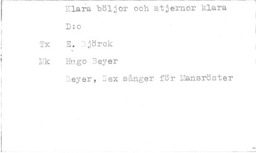 //// Klaa böljor och stjernor klara D:o //// Tx E. 3jörck //// Mk Hugo 3eyer //// 73eyer, Sex sånger för Mansröster ////