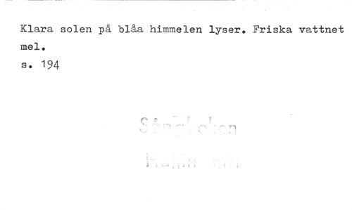 //// Klara solen på blåa himmelen lyser. Friska vattnet mel. //// s. 194 ////