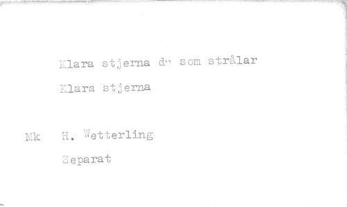 //// Klara stjerna (32, som strålar Klara stjerna //// Mk H. Wetterling //// Separat ////