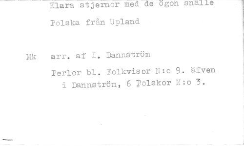 //// Klara stjernor med de ögon snälle Polska från Upland //// Nk arr. af T. Dannström //// Perlor bl. Folkvisor N:o 9. äfven //// i bannström, 6 DOIskor N:o 3. ////