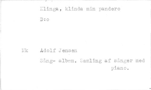 //// klinda min pandero //// D:o //// Wk Adolf Jensen //// Sång- album. samling af sånger med //// piano. ////
