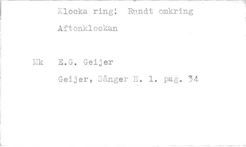 //// Klocka ring! Rnndt omkring Aftonklockan //// Lik E.G. Geijer //// Geijer, Sånger H. 1. pag. 34 ////