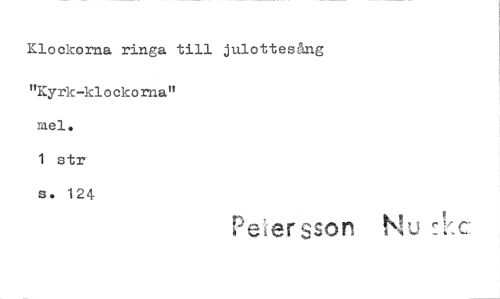//// Klockorna ringa till julottesång //// "Kyrk-klockorna" mei. //// 1 str //// s. 124 //// viersson Nu ////