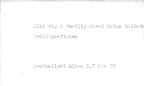 //// Kläd dig i festlig skrud sköna Gulindå. Bröllopsaftonen //// Mnsikaliskt Album H.3 N:o 20 ////