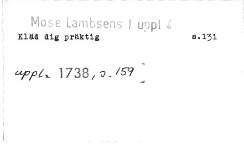 //// Mose Lambsens 1 upp //// Kläd dig präktig s.131 //// upp4i. 1738, v /59 ////