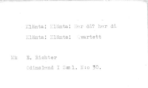 //// Klämta! Klämta! Hur då? hur då //// Klämta! =mata! Jrartett //// Mk E. Richter //// Odins lund I Sam 1. N:o 30. ////