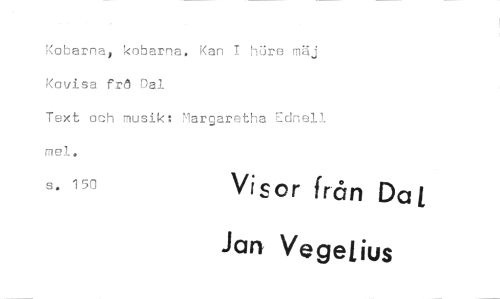 //// Kobarnat kobarna. Kan I härs mäj //// Kovisa frö Dal //// Text och musik: Margaretha Ednell //// mel. //// s. 150 Visor från Dal //// Jan Vegetius ////