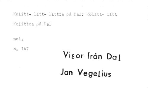 //// Kolitt- litt- littra på Dal: Kolitt- litt Kolittra på Dal //// mal. //// 8. 147 //// Visor från Dat //// Jan Vegelius ////