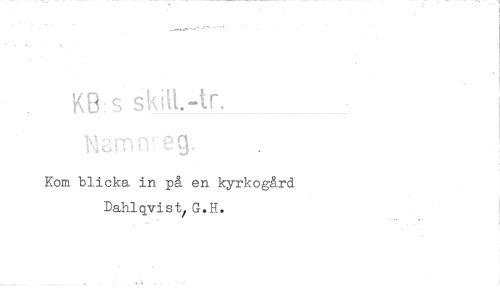 //// KB:s //// tr. //// Kom blicka in på en kyrkogård //// Dahl qvi s t, G . H. ////