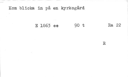 //// Kom blicka in på en kyrkogård //// E 1863 ee 90 t Ra 22 //// R. ////