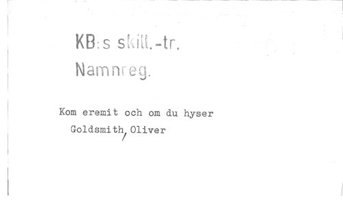 //// KB:s //// Namnreg. //// Kom eremit och om du hyser Goldsmith Oliver ////