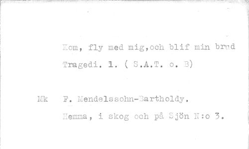 //// Kom, fly med mig,och blif min brud Tragedi. 1. ( S.A.T. o. B) //// Mk F. Mendelssohn-Bartholdy. //// :emma, i skog och på Sjön X:o 3. ////