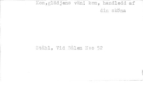 //// Kom,glädjens vänt kom, handledd af //// din sköna //// Ståhl, Vid 3ålen N:o 52 ////