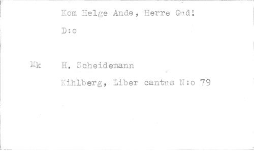 //// Kom Helge Ande, Herre G?? d; D:o //// ly k H. Scheidemann //// Kihlberg, Liber cantns N:o 79 ////