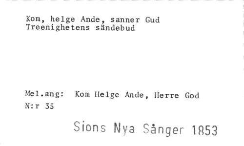 //// Kom, helge Ande, sanner Gud Treenighetens sändebud //// Mel.ang: Kom Helge Ande, Herre God N:r 35 //// Sions lya Sånger 1853 ////