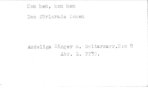 //// Kom heå, kom hem Den förlorade Sonen //// Andeliga Sånger m. 9litarrarr.U:o 8 //// Abr. L. 2239. ////