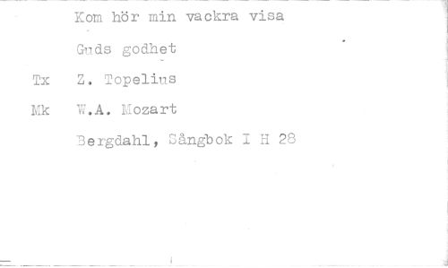 //// Kom hör min vackra visa //// Guds godhet Tx Z. Topelius Mk W.A. Mozart //// Bergdahl, Sångbok 1 H 28 ////